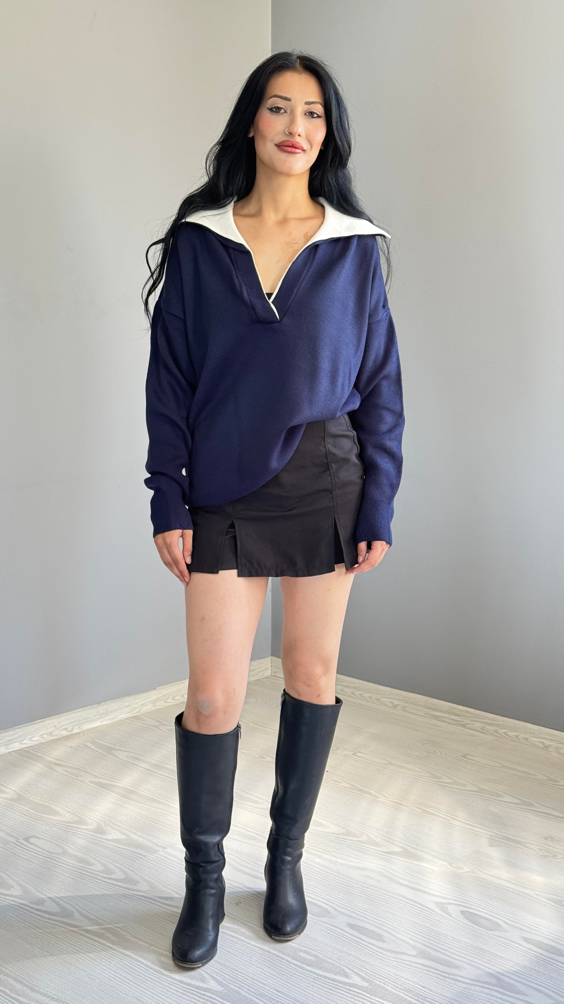 Yakalı Kazak Lacivert